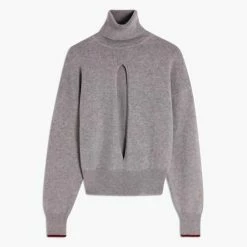 Victoria Beckham women Cashmere Front Slit Polo Neck Jumper in Grey Melange