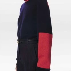 Victoria Beckham women Contrast Detail Polo Neck Jumper in Navy/Red