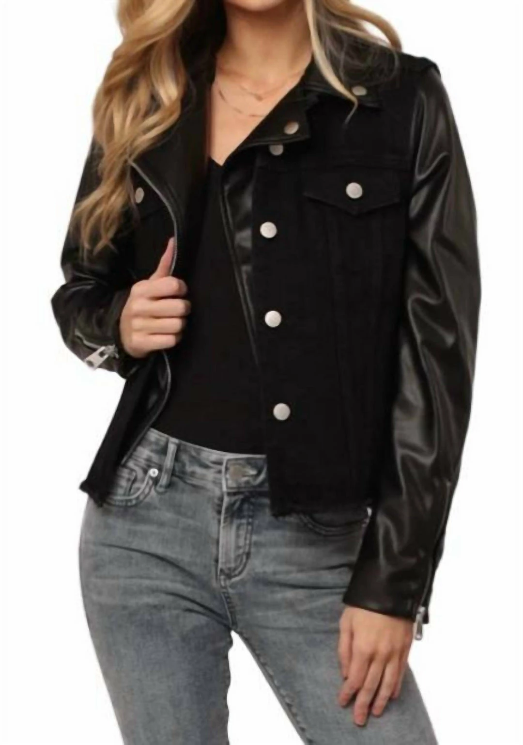 The perfect combination of Denim and Leather! This jacket has the cutest leather sleeves and it makes for the perfect jacket on a night out!