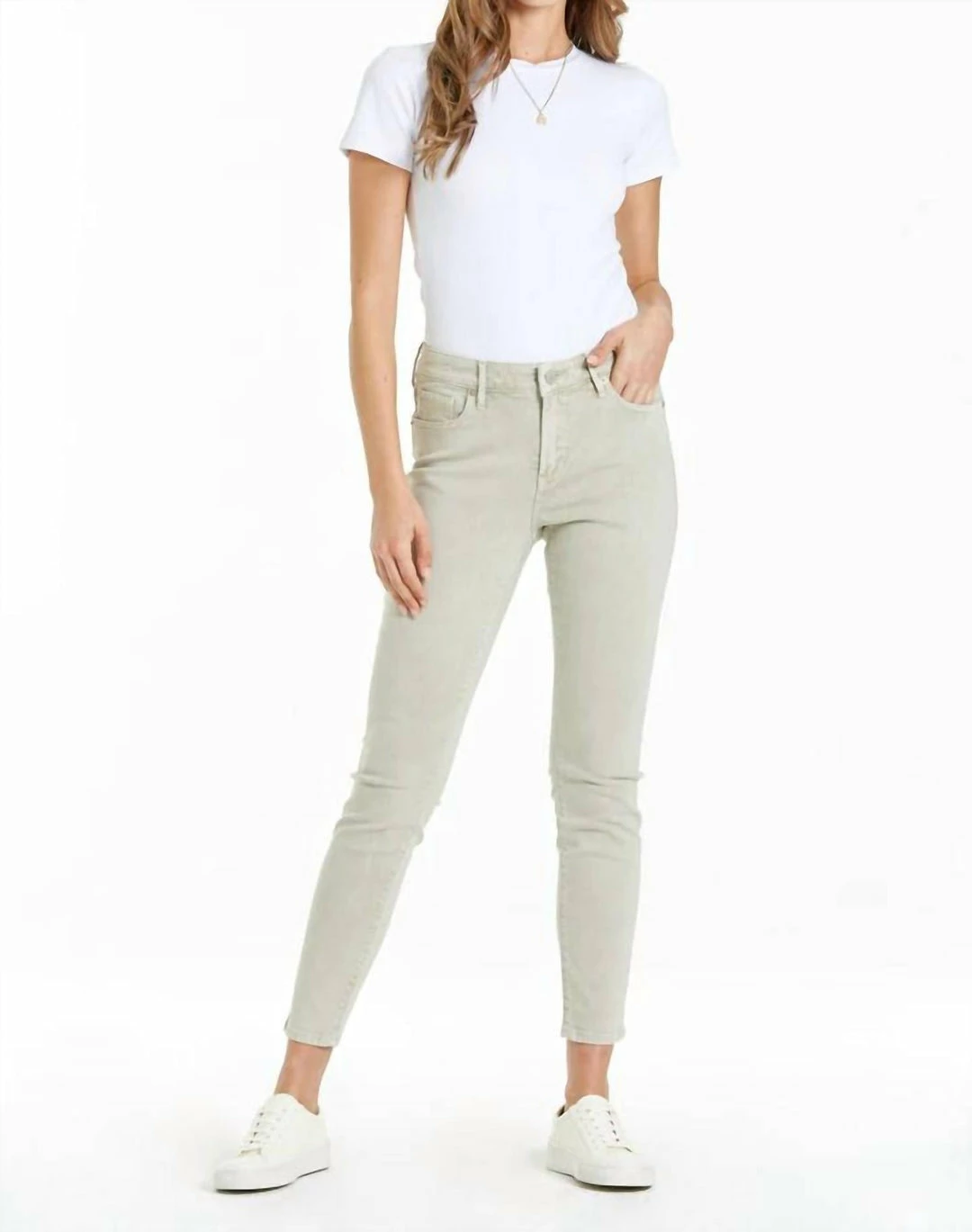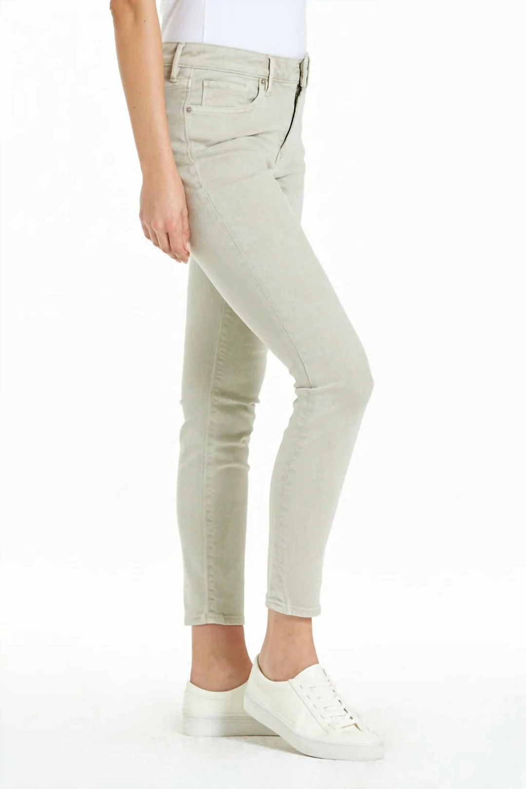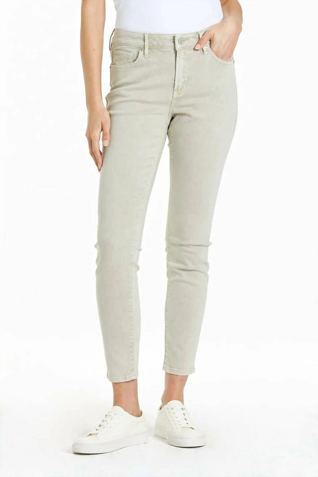 High rise ankle skinny jeans. It’s the stunning fit that sits slightly lower on the waist and fitted skinny in the hips through the leg. Ankle inseam on comfort stretch denim with designer color palettes, washed and brushed for softness, and slub characteristics.9 1/2″ Front Rise (include waistband), 10″ Leg Opening, 28″ inseam (Size 27)95% COTTON 3% POLYESTER 2% SPANDEXMachine wash cold, Tumble dry lowImportedZip fly and button closureFive-pocket style