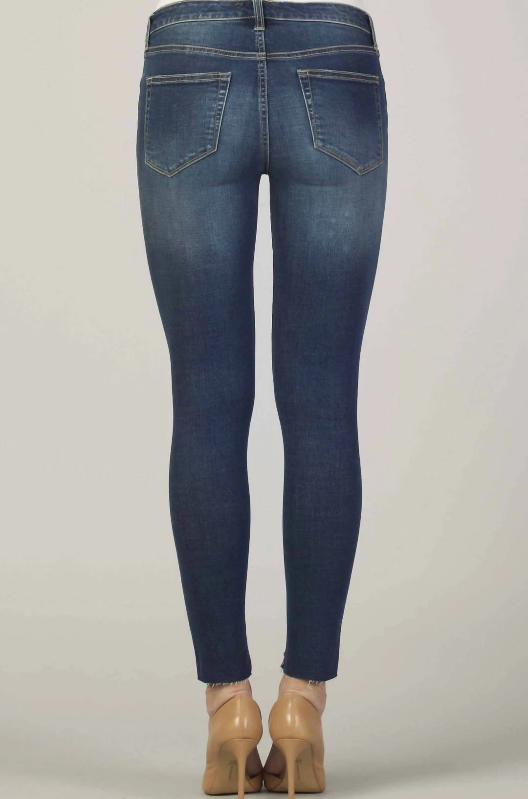 Featuring skinny fit in a trendy distressed style with a low to mid rise waist.