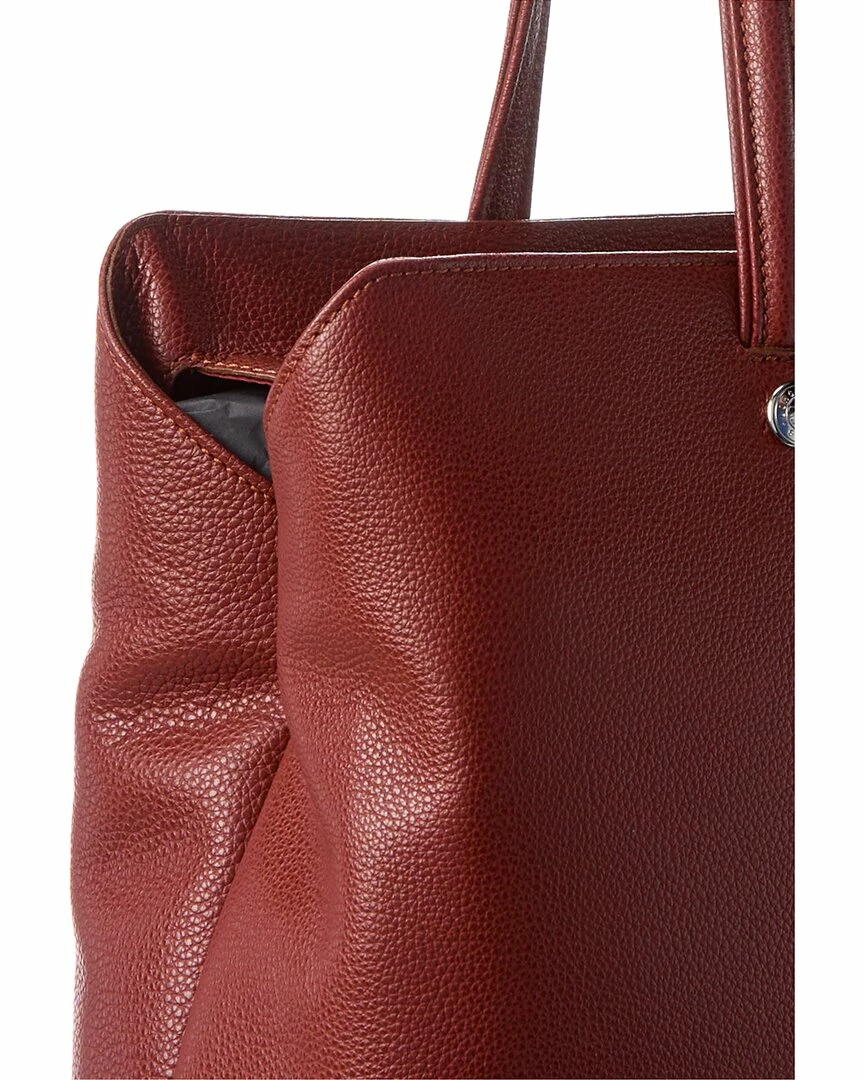 - Le Foulonne Top Zip Nylon & Leather Shoulder Tote In Chestnut Nylon And Leather Trim