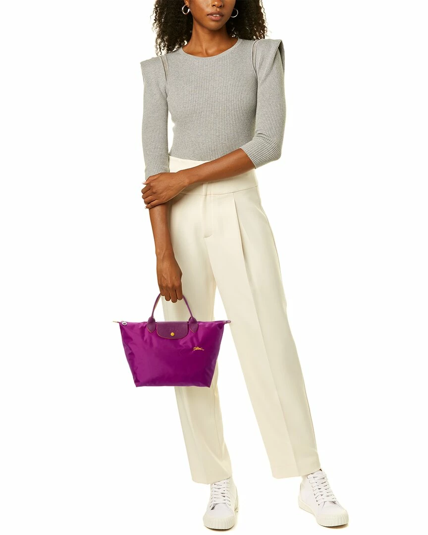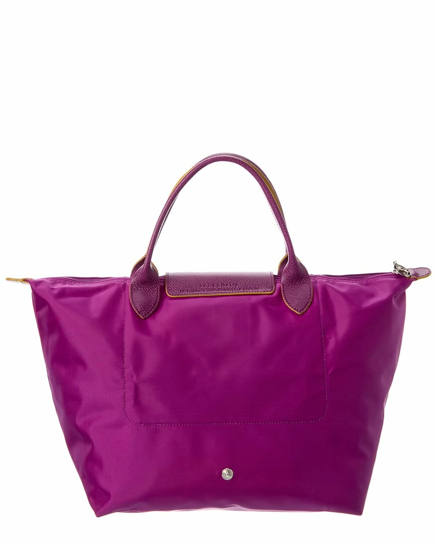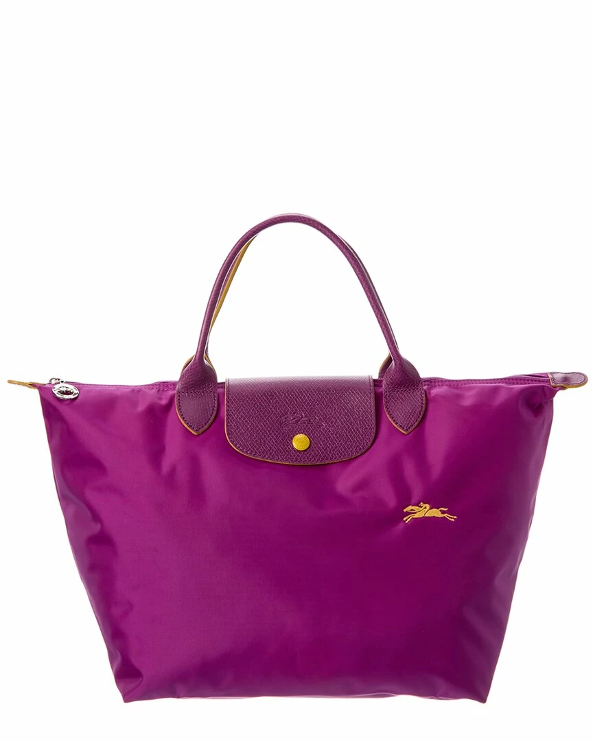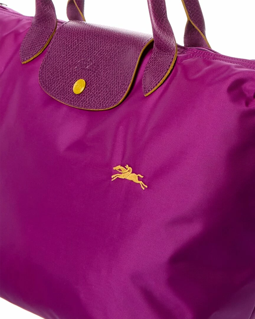 - Le Pliage Club Medium Canvas & Leather Top Handle Tote In Violet Polyamide Canvas With Inside Coating/Cowhide Trimming And Silver-Tone Hardware With Horse Embroidery