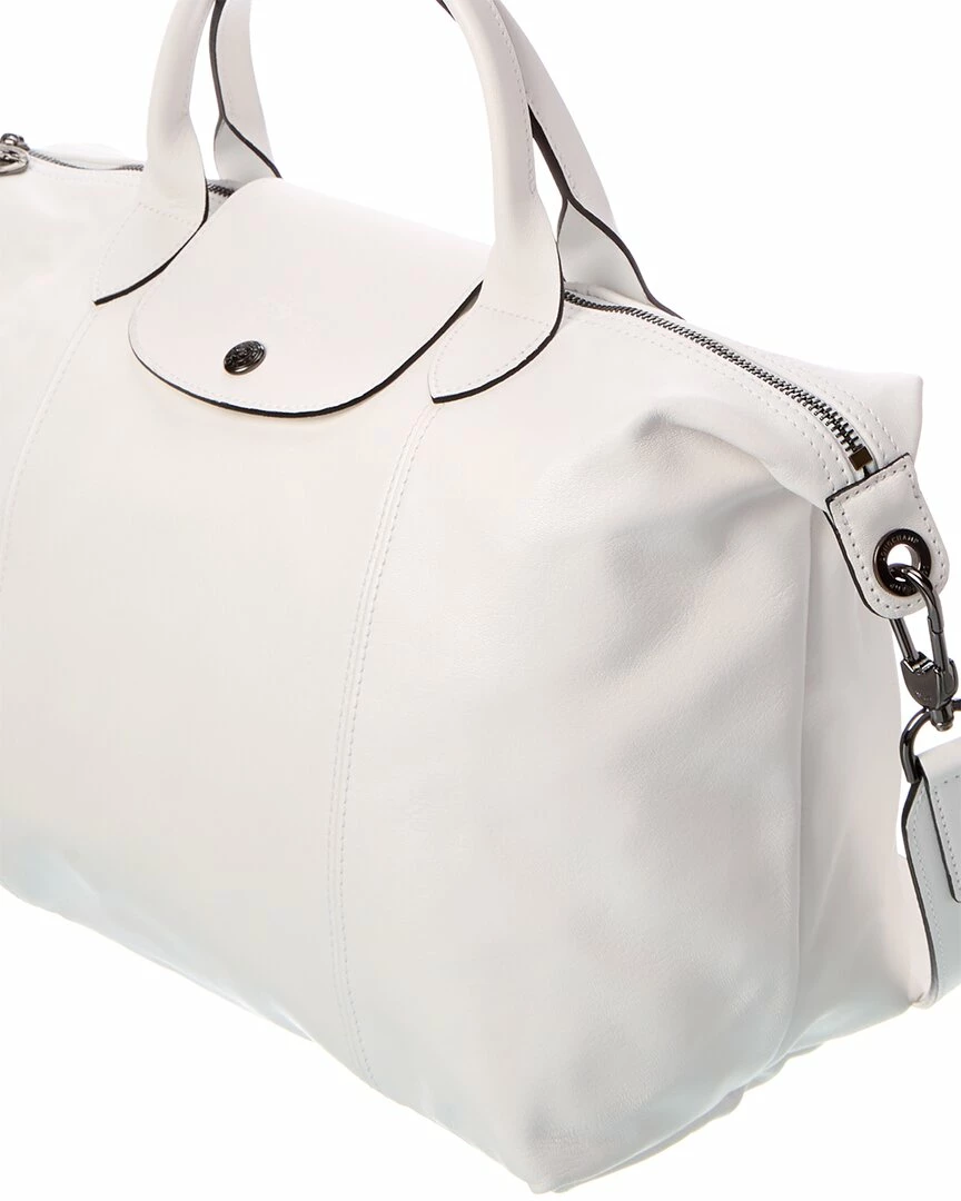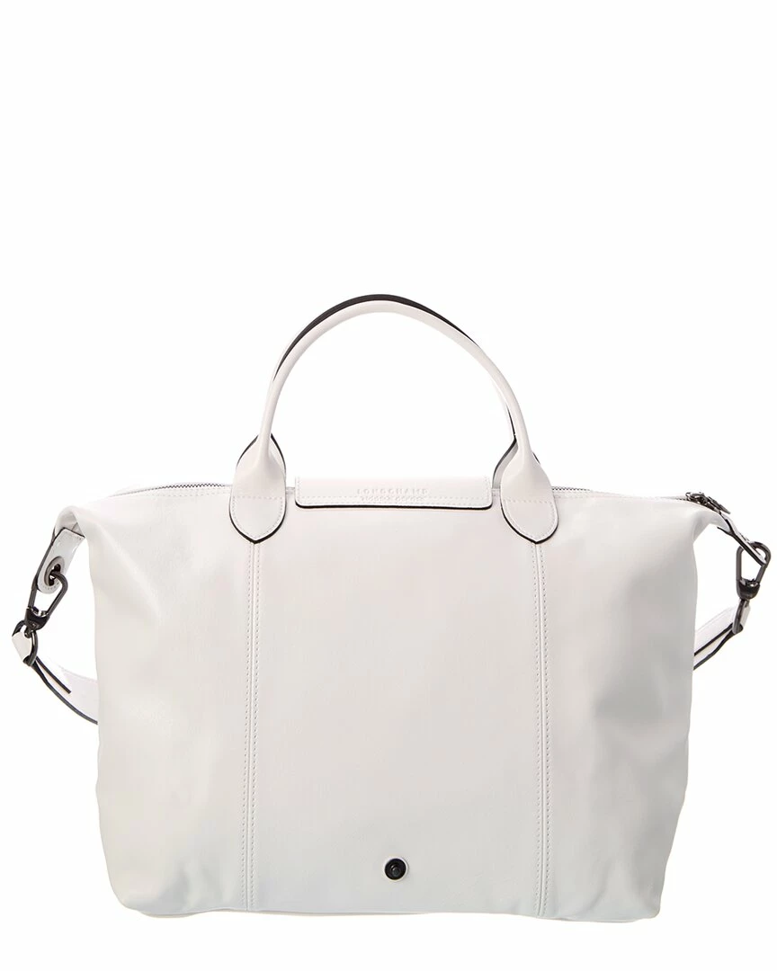 women Longchamp Le Pliage Cuir Medium Leather Logo Strap & Short Handle Tote